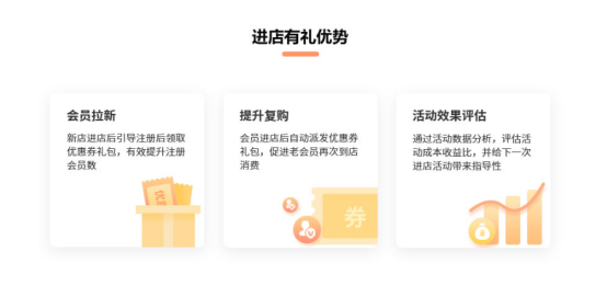 小编这次就随机选择一个功能给大家进行介绍,向咱们这种处在上升期的店,进店有礼这个功能就能很好地帮助咱新店营销。这个功能的优势有三点,一是能够有效提升会员的数量,二是可以促进老会员的消费,三是可以让我们方便对量化的活动数据进行分析,为后续的活动提供参考借鉴。具体哪种方式更适合,还得咱自己去探索一下~