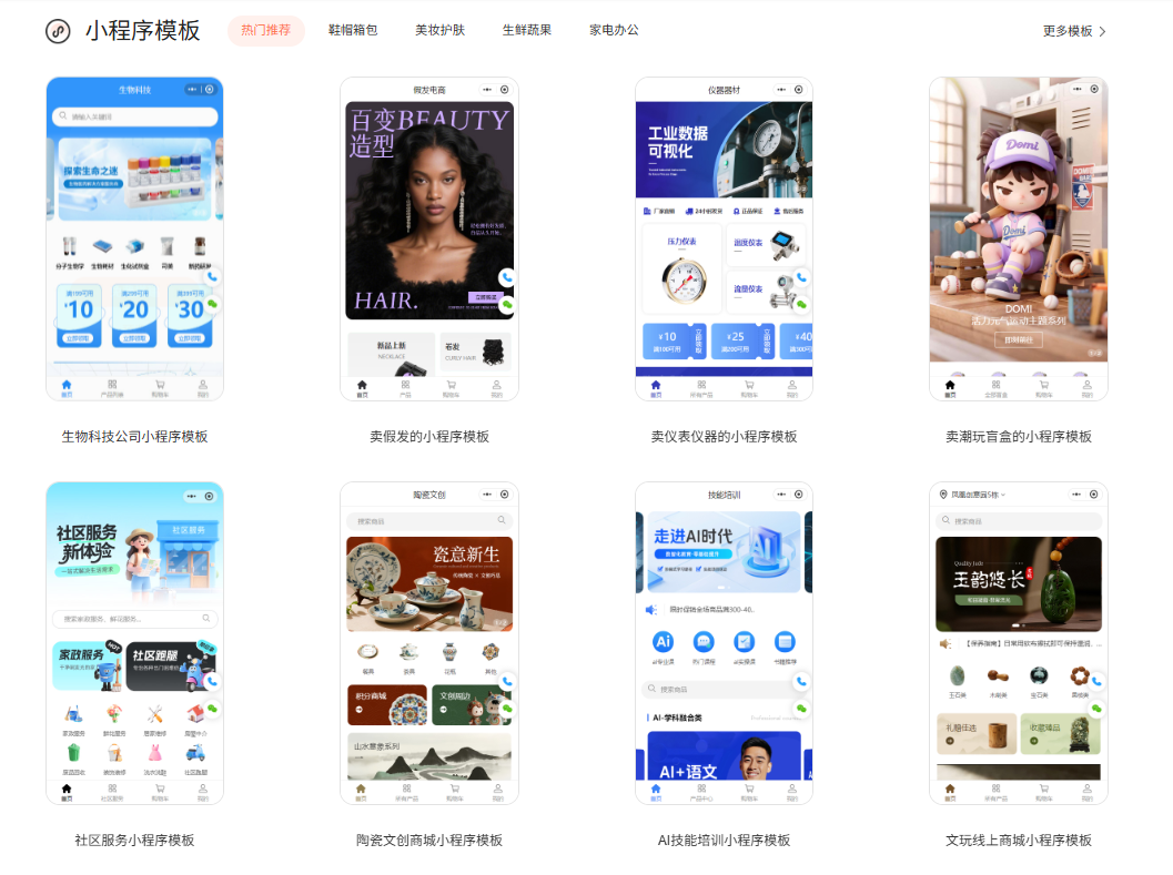 这个平台上则是涵盖着各行各业丰富的商城模板。无论你从事于哪种行业,都可以在上面选择适合你的模板。你只需点击“一键套用”,便可以对商城的模块、页面、风格等元素进行个性化设计啦!如果你对于商城的外观审美有较高要求的话,那这个平台为你提供很大的设计空间欧~
