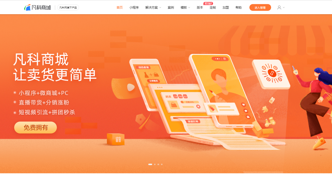 凡科商城平台适用于有电商需求的用户们,它也能应用于多种电商模式之下,帮助用户一键生成小程序商城、微商城、电脑商城。同时,平台还能够实现小程序、手机、电脑多终端覆盖,助力商城进行多渠道流量铺货,来大力提高商城营收。