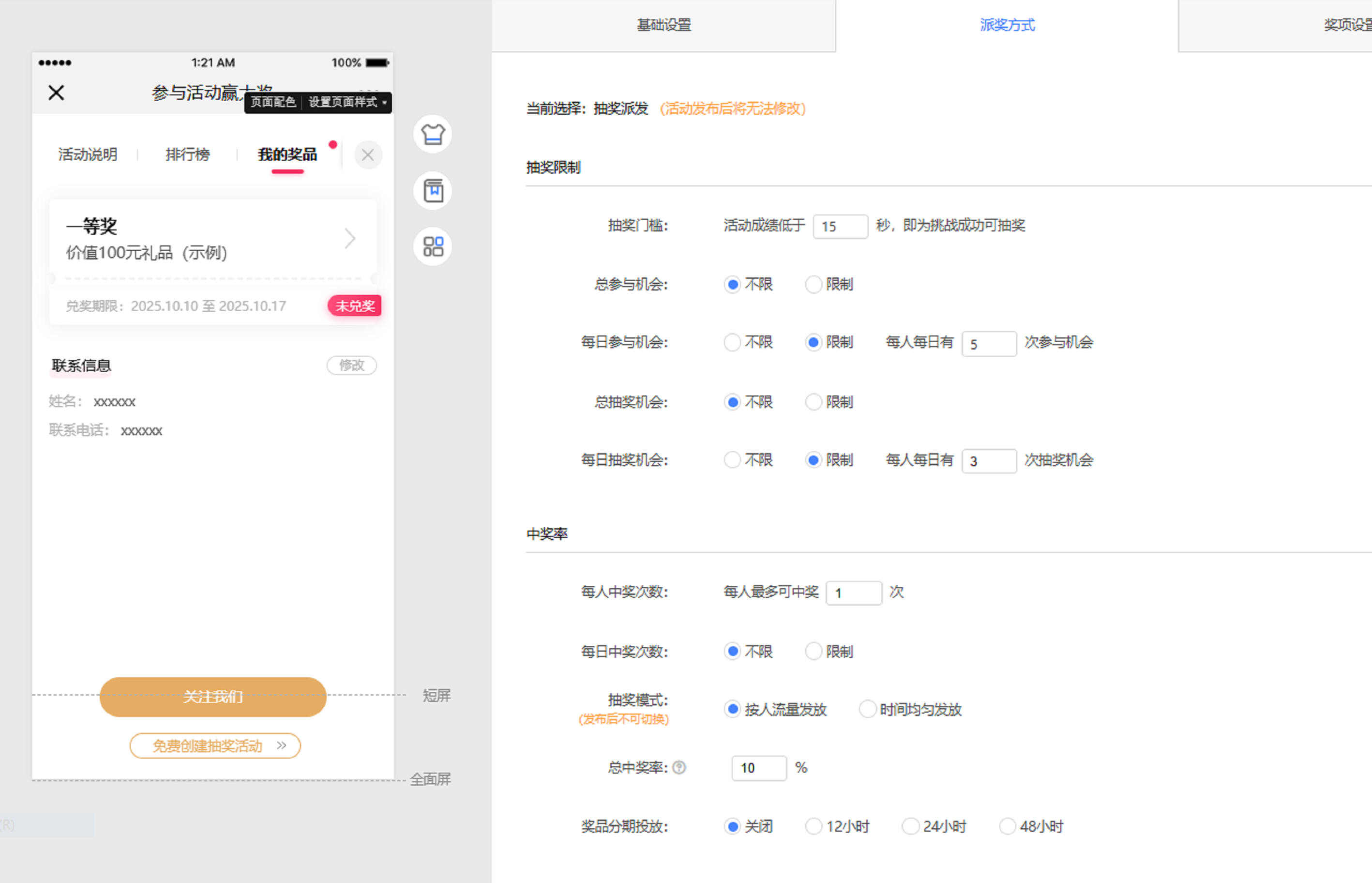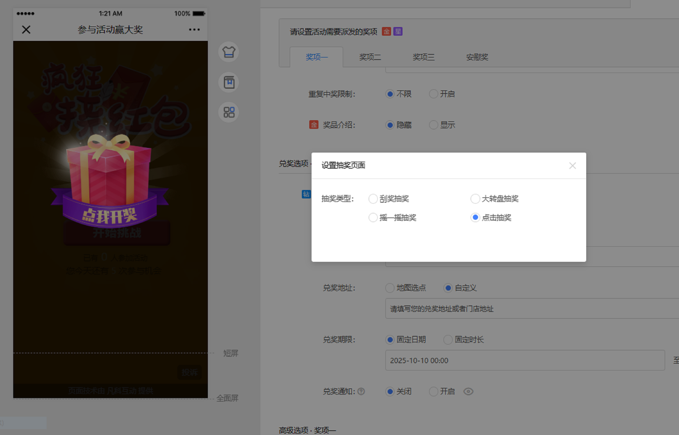 四、设置活动派奖方式