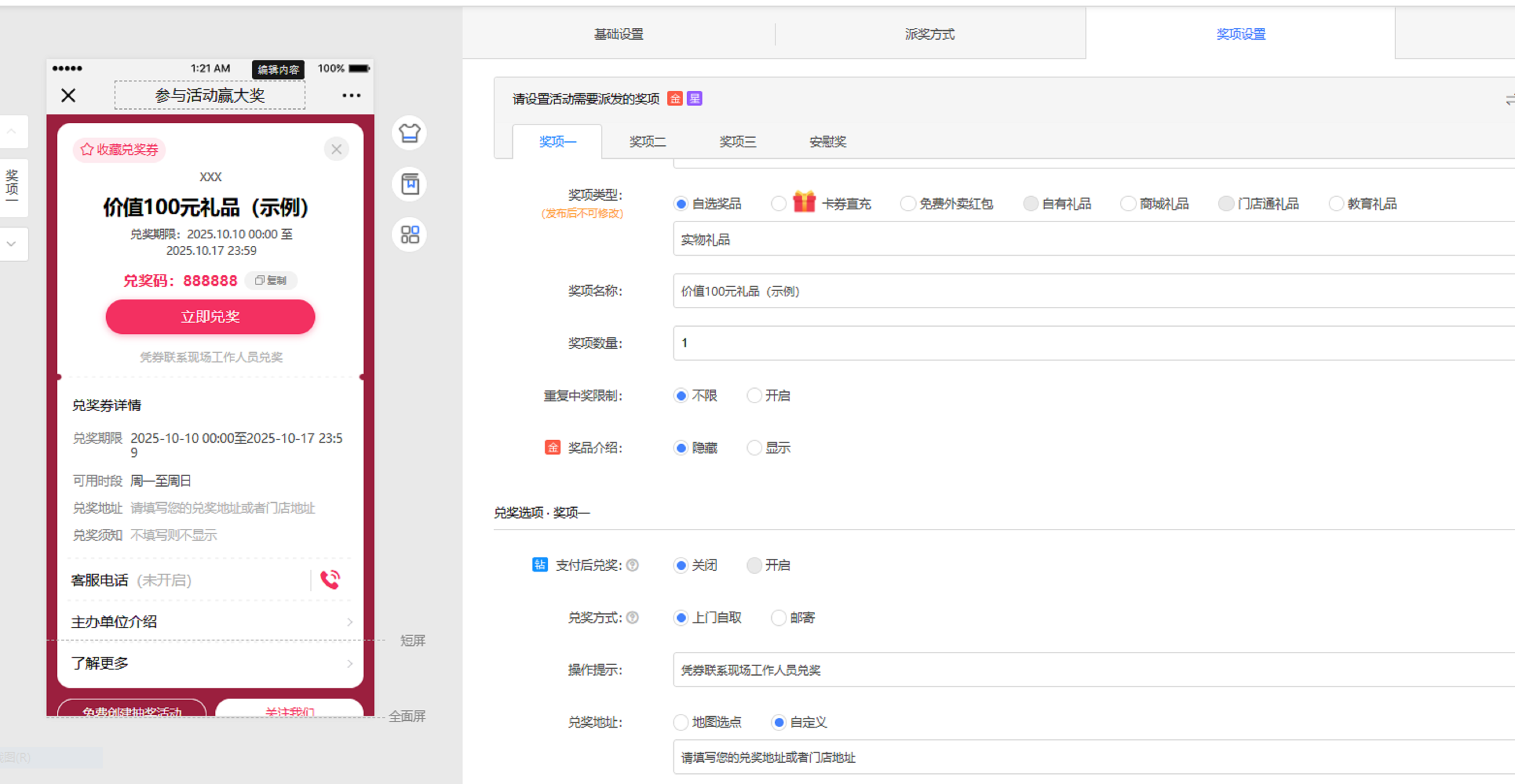 还有关乎兑奖方面,你可以去设置兑奖的方式、兑奖期限等内容,以方便整场活动的顺利收尾,确保有始有终哇!