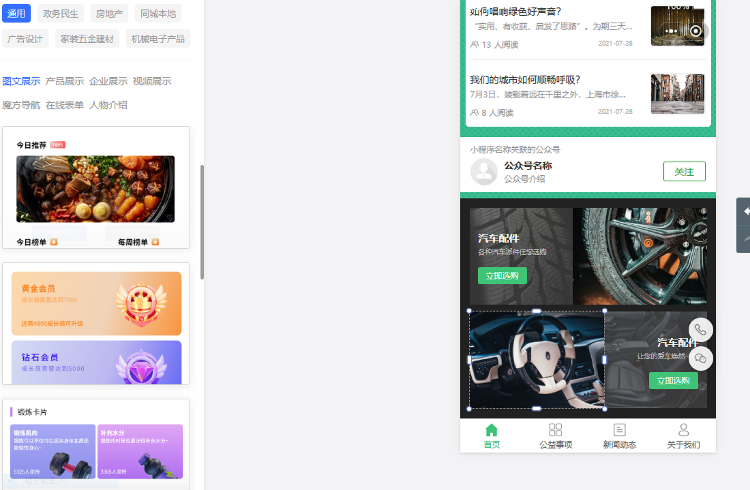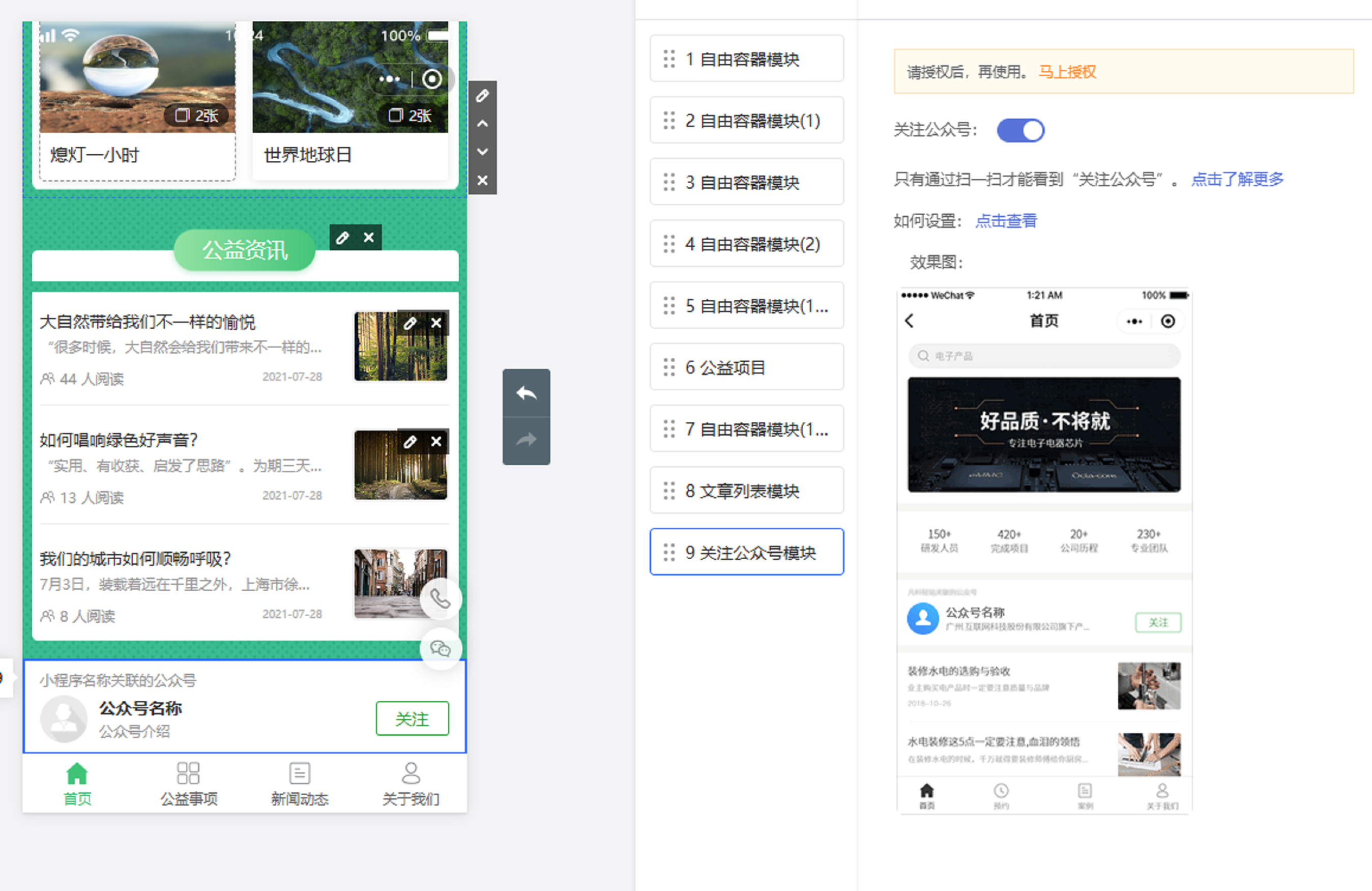 尤其是平台会为大家提供许多丰富的模块!像是互动模块中的“关注公众号”模块,将它添加在你小程序上,方便用户一键关注,那么便可以大大增加你家公众号的曝光度哇!