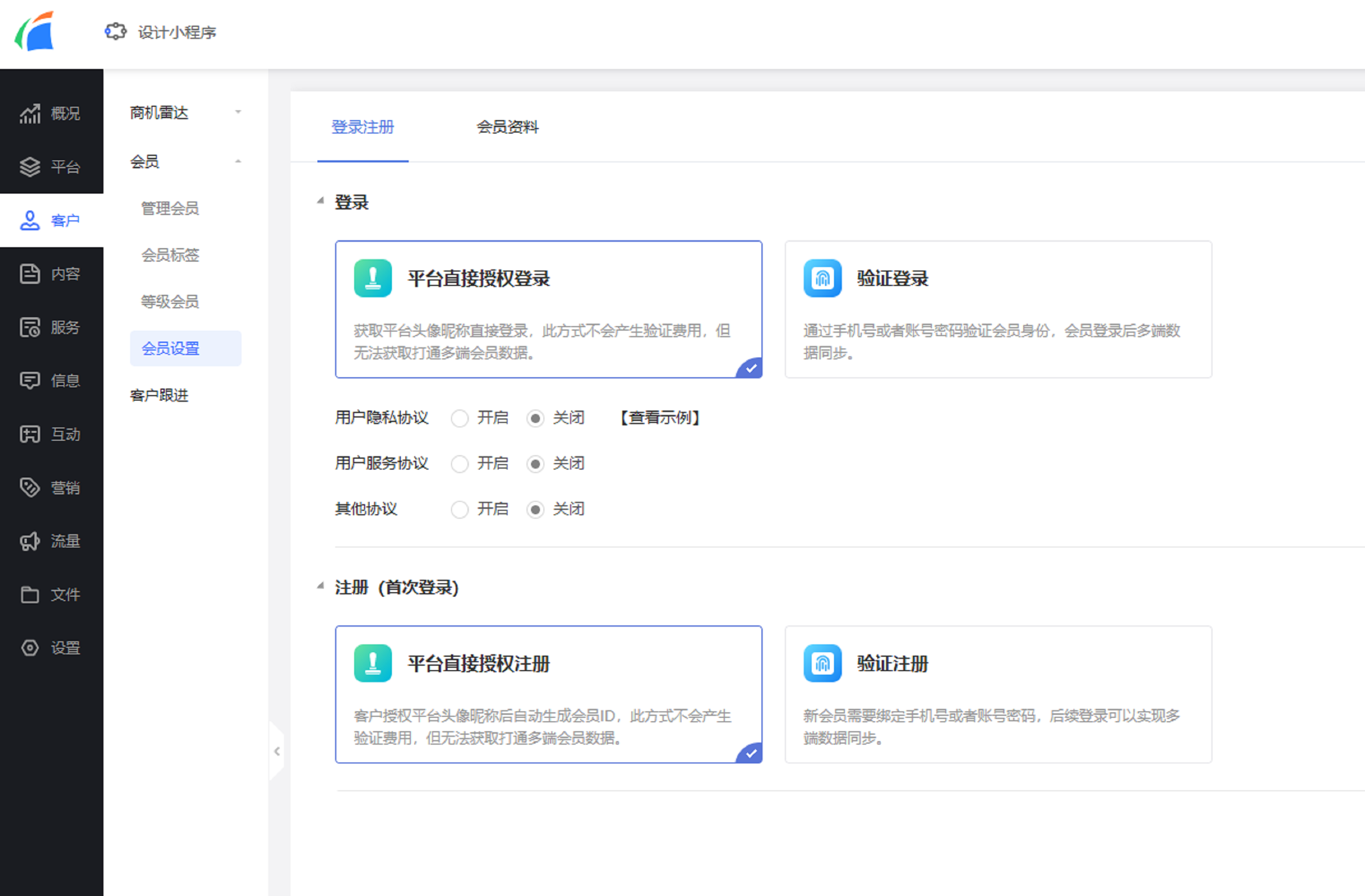 并且,如果你家公司/店铺有会员中心,那么会员管理问题你也无需担心啦!因为在“会员”板块中,我们可以对会员等级、会员标签等内容进行统一设置~