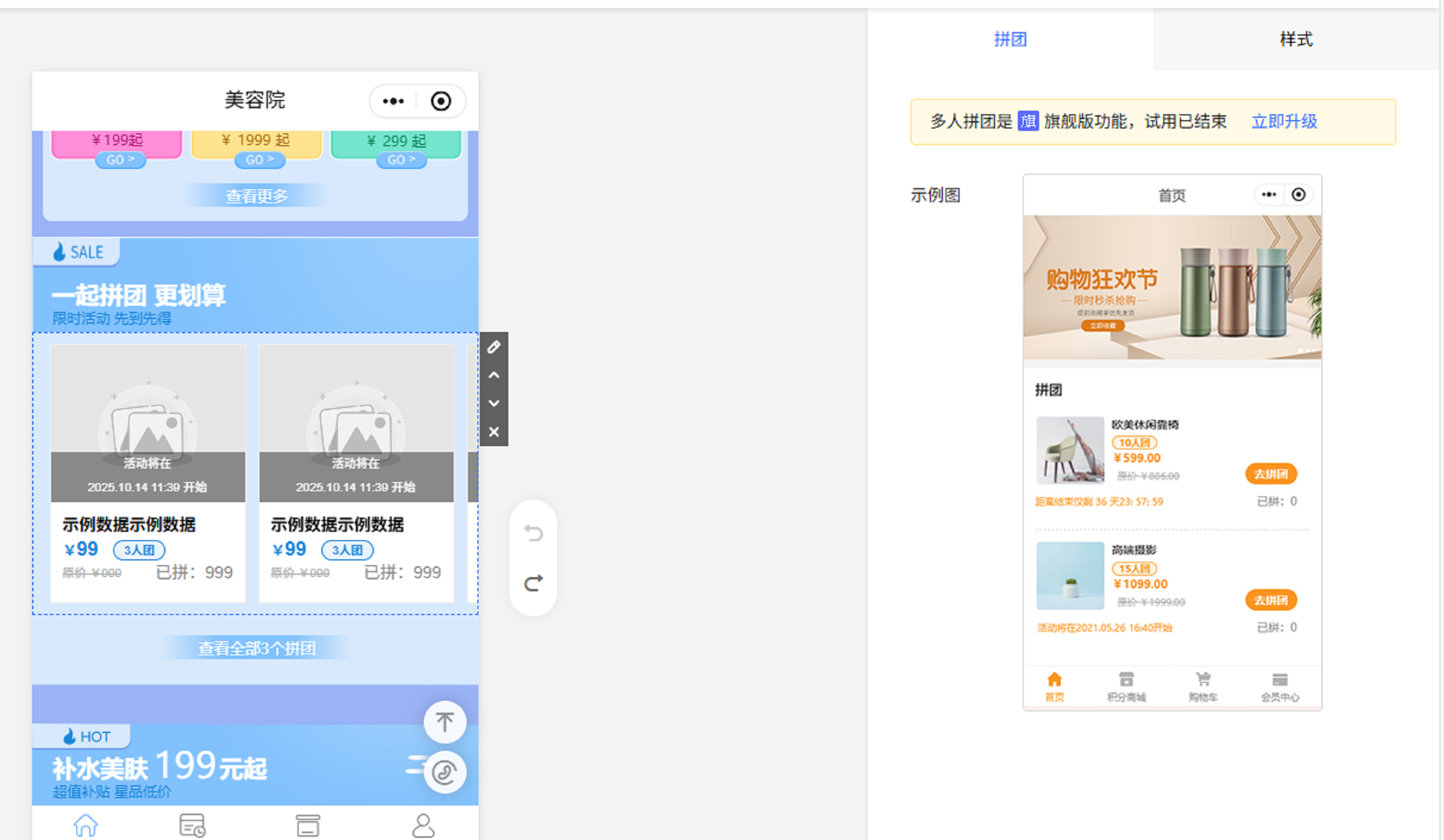 而且,如果店铺想主推近期的营销活动,那平台也有多个“营销”模块可以让大家选择。这样店铺营销活动就可以直观地呈现出来。