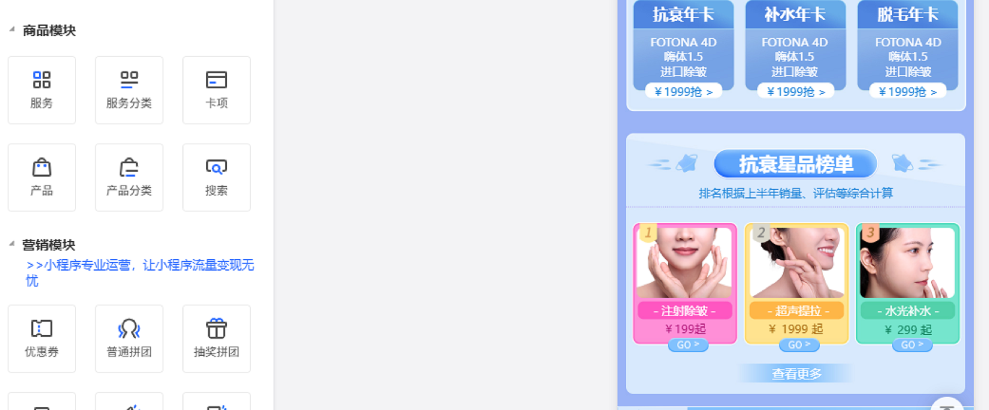 我今天来给各位老板推荐一个平台工具——盈建云。接下来为大家揭秘如何在这个平台上搭建出一个线上美容护肤店铺出来!