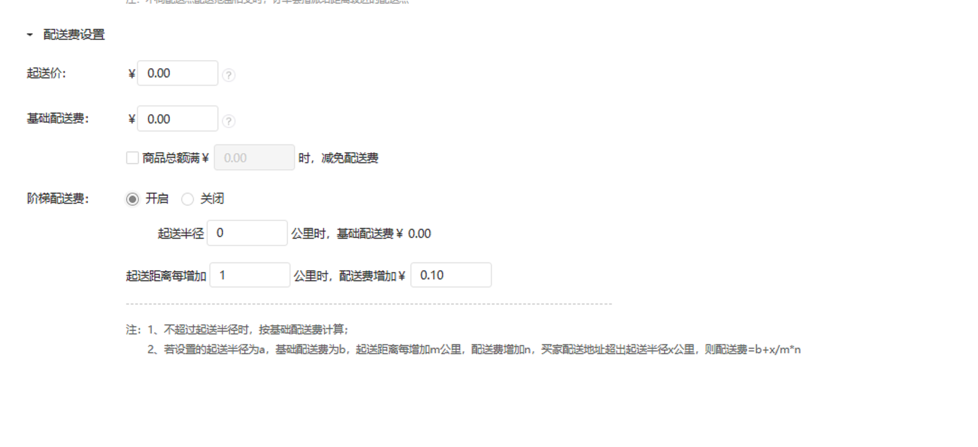 2. 完善配送设置:平台支持多种配送费设置,起送价、基础配送费、满额免运费一应俱全,大大降低配送成本。