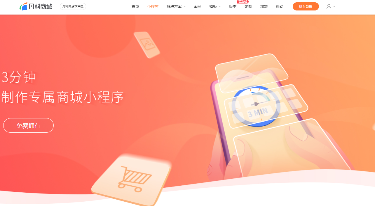 设置好同城配送这项功能,咱们需要用到凡科商城这个平台。