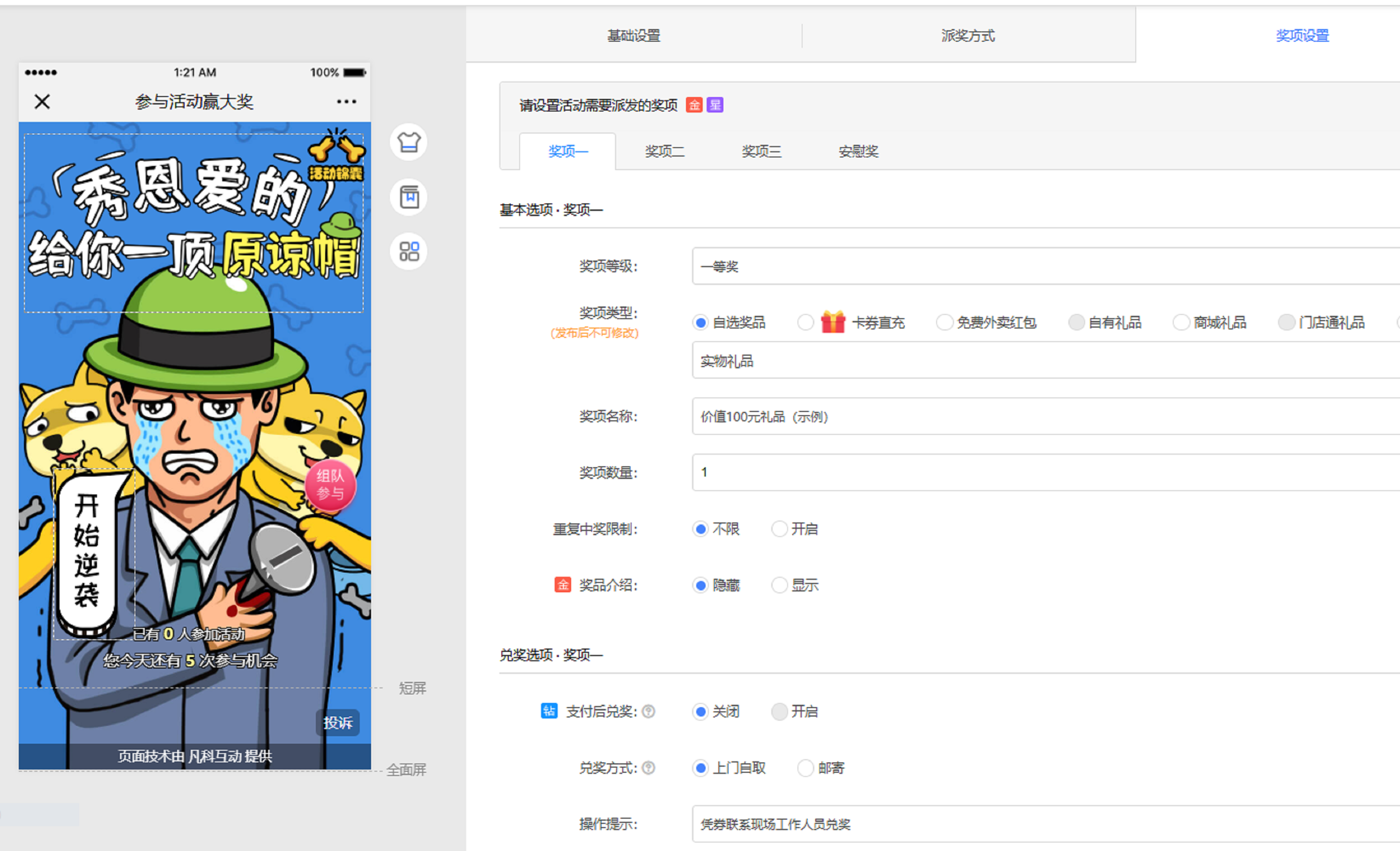 设置环节主要分为了三大部分,分别是基础设置、派奖方式与奖项设置。每一部分的设置都非常重要的欧!