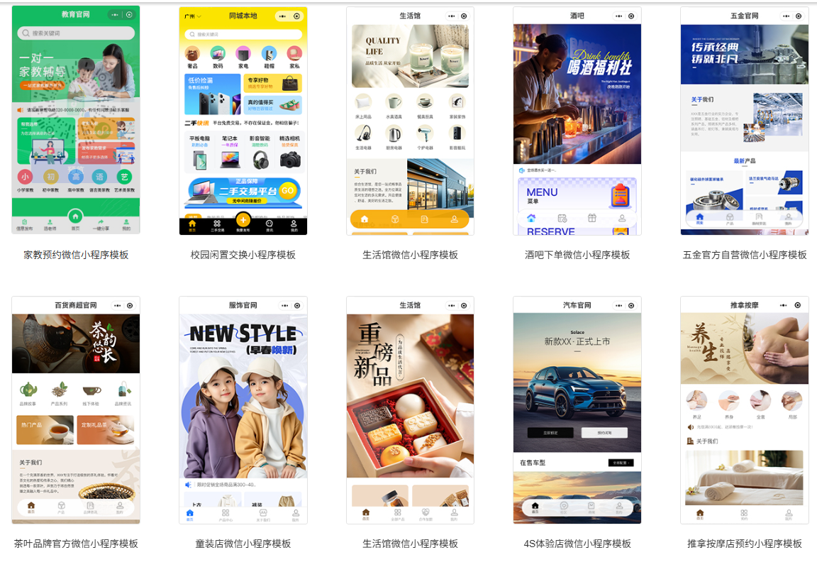 在模板中心,各位可以先来选择一个心仪的小程序模板。平台按行业为大家划分出来了多种模板类型。我们挑选一款符合自己所处行业的模板就可以啦~这样也能更加突出小程序的行业属性与公司风格呀!