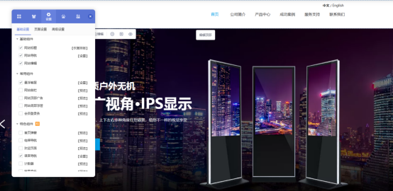 小编以这个网站为例子演示一下,你可以看到,左边的导航窗口分别有“基础组件”,这一块是网站的基础设置内容,我们一般不用动它;“常用组件”呢,就是一些额外的功能,如果有需要的朋友可以勾选添加,没有需要的话就不用管;“特色组件”是一些非必须的,但是能让你的网站锦上添花的内容,大家也可以看看自己有没有添加的需要,小编我一般会加一个“欢迎页面”,给客户一个好印象~