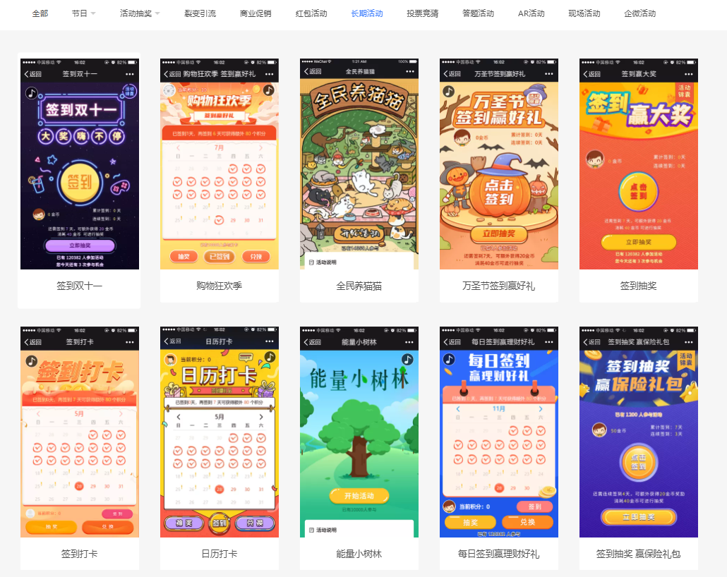 进入平台首页,选择“长期活动”后,有许多相关活动模板会呈现出来。