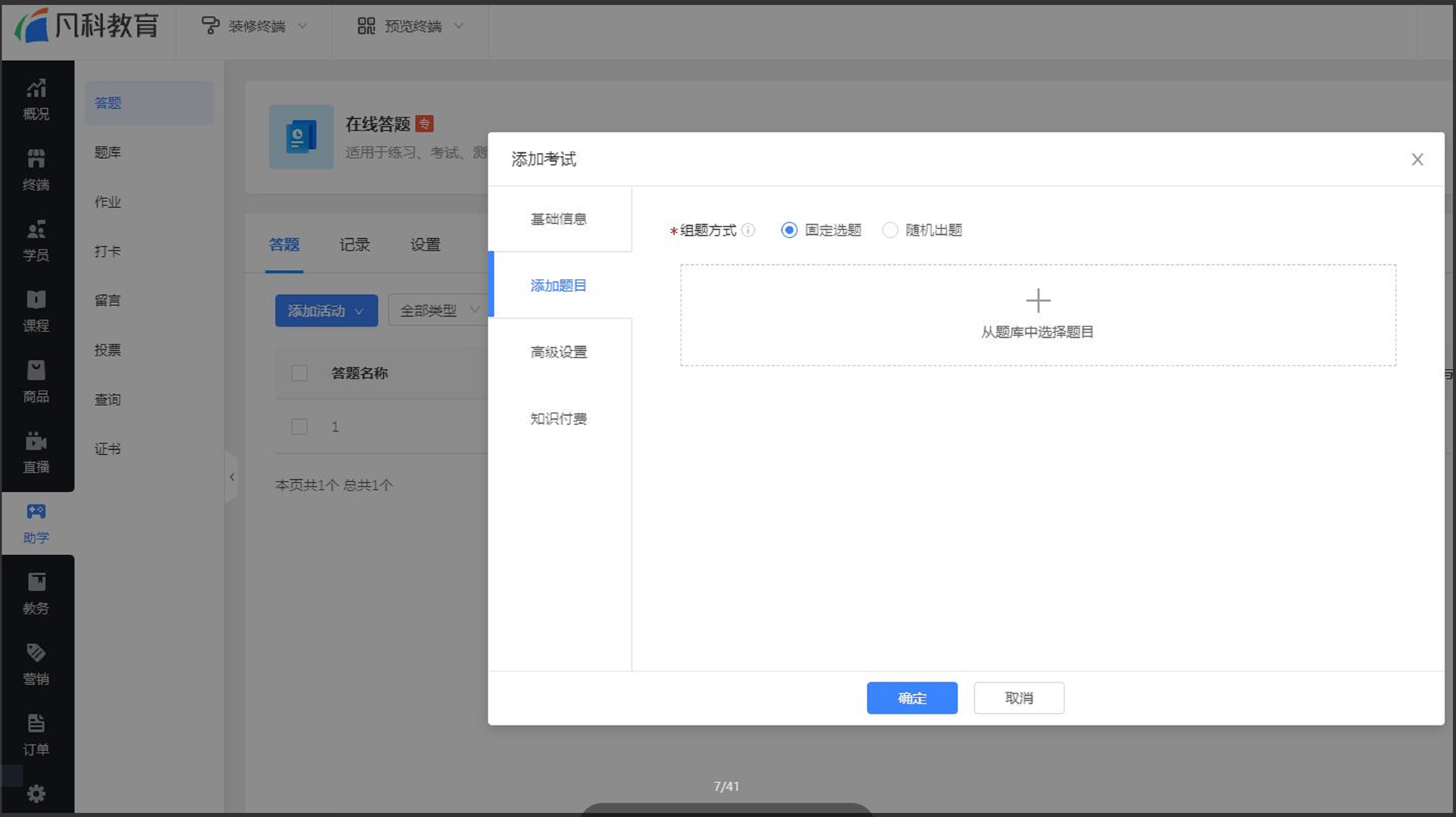 如果还没有的话,不如来设置一个“在线答题”功能呢?设置这个功能的话,咱们需要用到凡科教育这个平台。