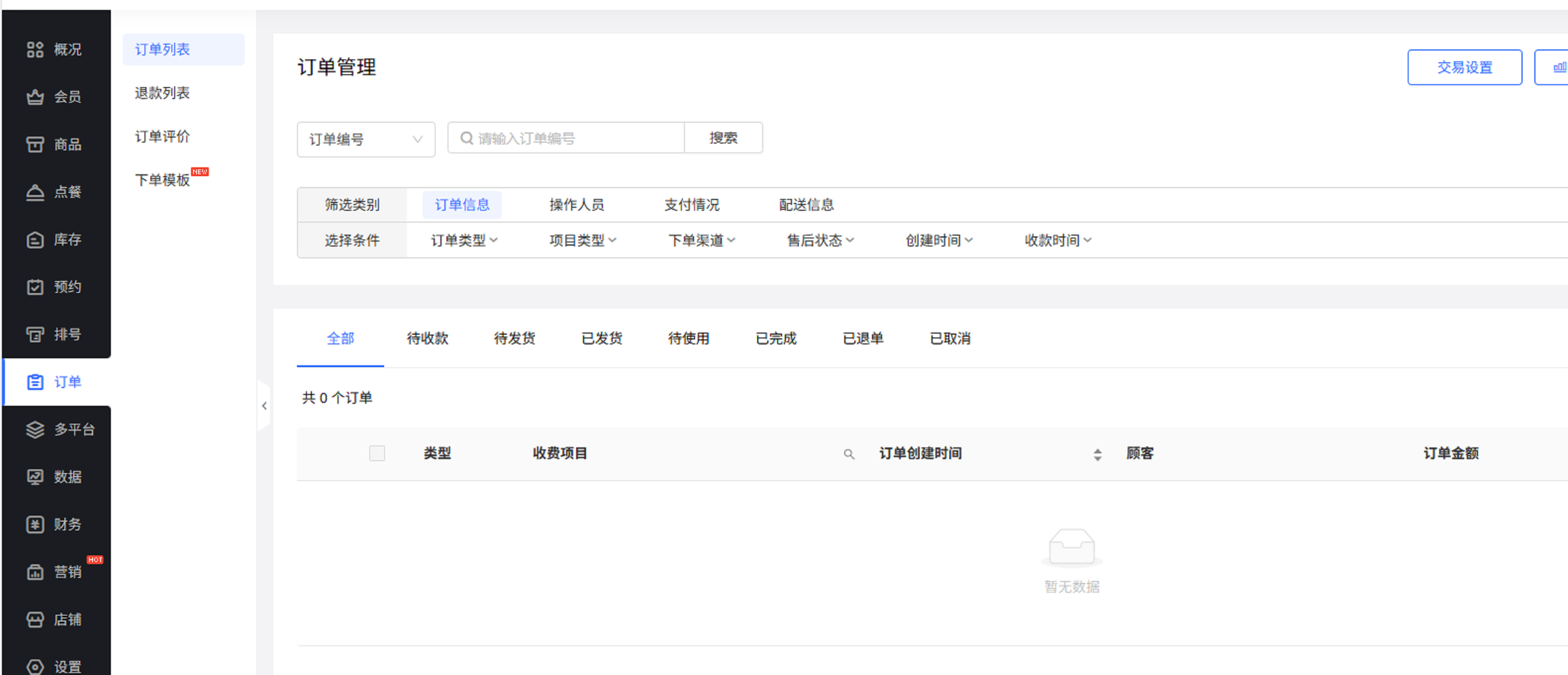 很经常门店订单一多的话就容易乱。所以,当你将每笔订单都添加进后台之后,在“订单管理”页面上,每笔订单的状态、收费项目、金额等信息都一目了然。
