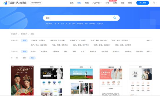 现在小程序制作平台有很多,不过,如果是像我们一样的零基础新手,需要选择的平台较好具备方便上手的特性。小编这里以凡科轻站小程序为例子,这个平台有很多现成的,适配各行各业的模板,哪怕是不会代码的新手也可以做出个有模有样的小程序!