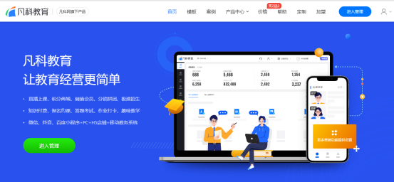凡科教育,一个方便实用的教育经营平台。除了网上答题以外,上面还有很多专门为教育而设计的功能,像直播上课,用户可以直接在这个平台上面进行授课,还能够进行作业打卡的设置,实现从课前到课后的一条龙教育形式。而且它的价格也不贵,结合它丰富的功能来看,性价比真的蛮不错的。