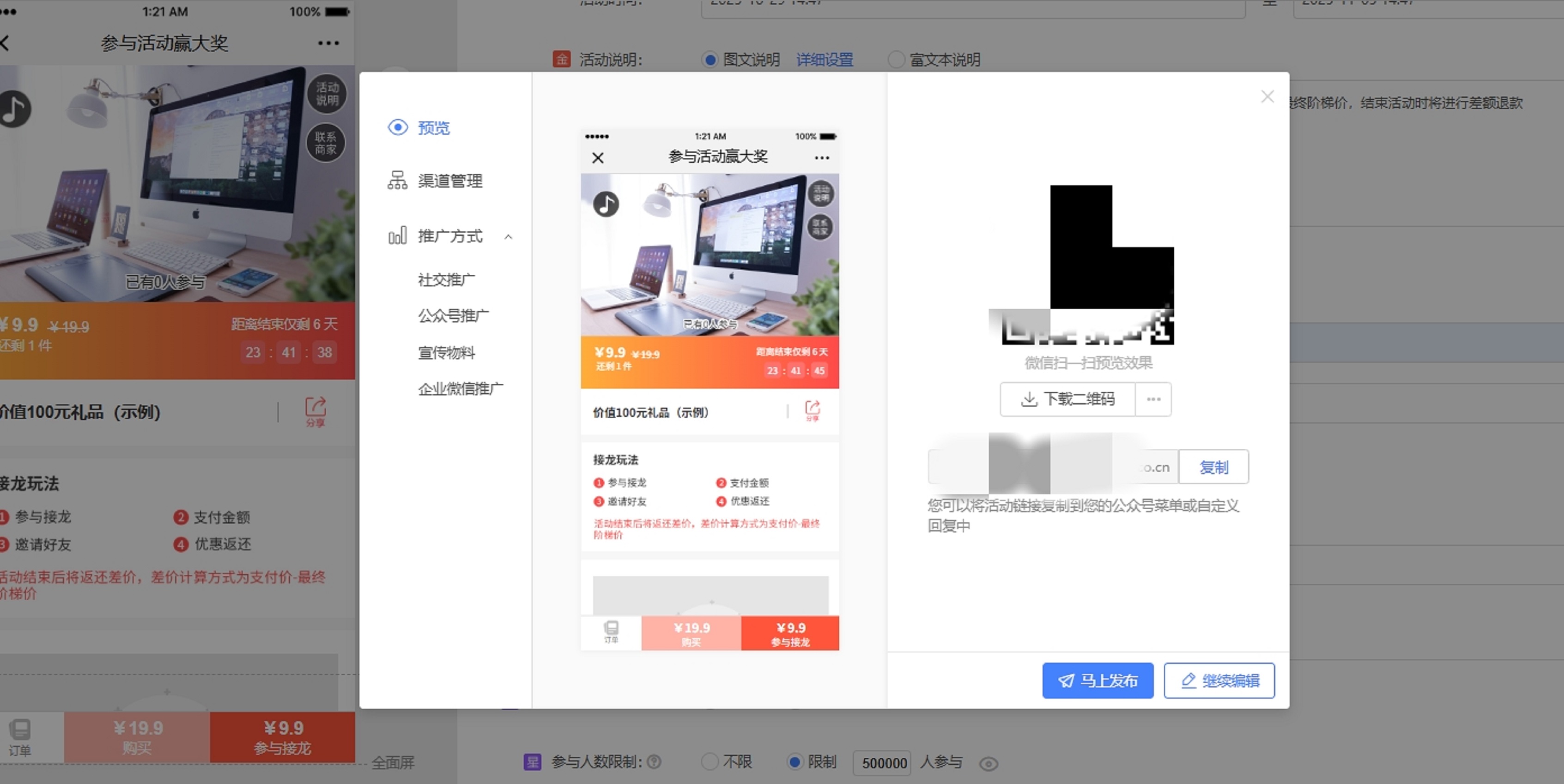 活动设置完后,我们便可以先扫码预览一下活动啦。看看整体呈现出来的效果是不是大家满意的样子~