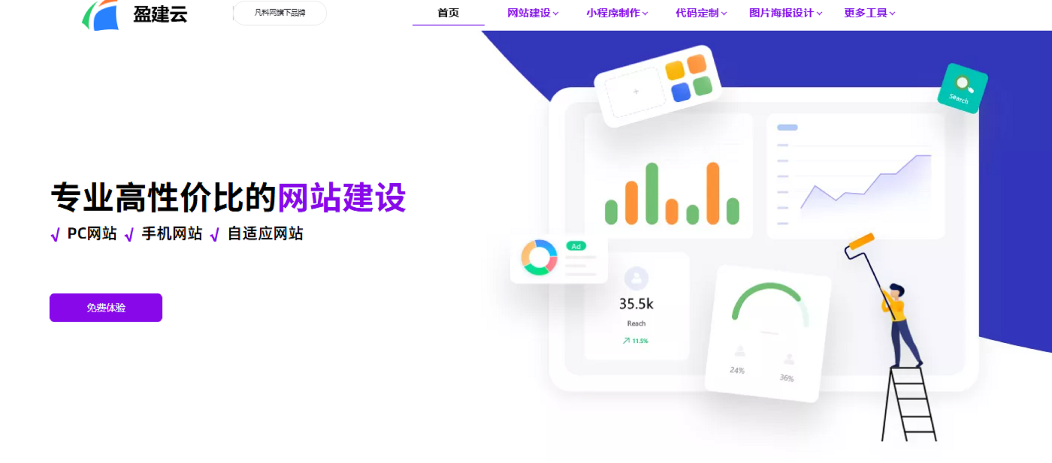 盈建云也是一款自助型搭建网站工具,无论是初创团队,还是个人都十分适用这个工具。