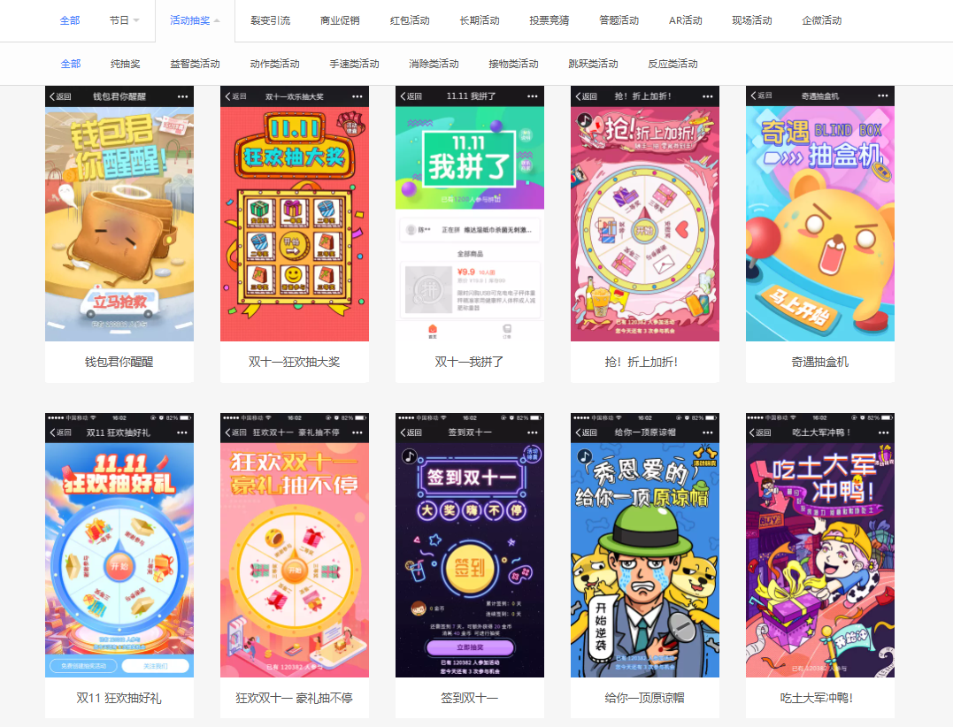首先,在模板中心,咱们选择“活动抽奖”这一大类。在这个类别底下,涵盖着不同活动主题、节日、抽奖类型的小程序模板。
