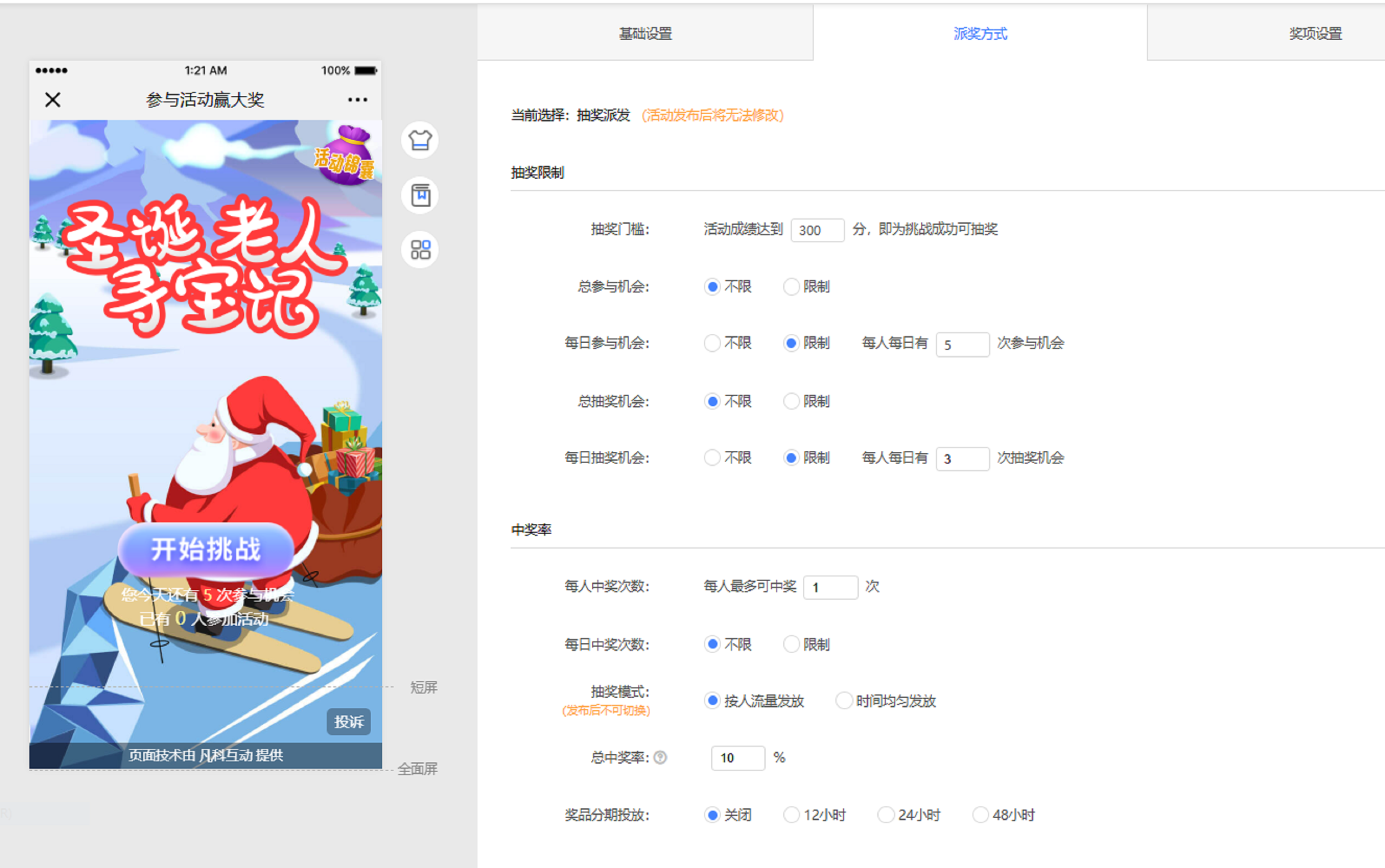 同时,咱们还能设置活动的中奖率欧~比如说,每人中奖次数、抽奖模式等等。