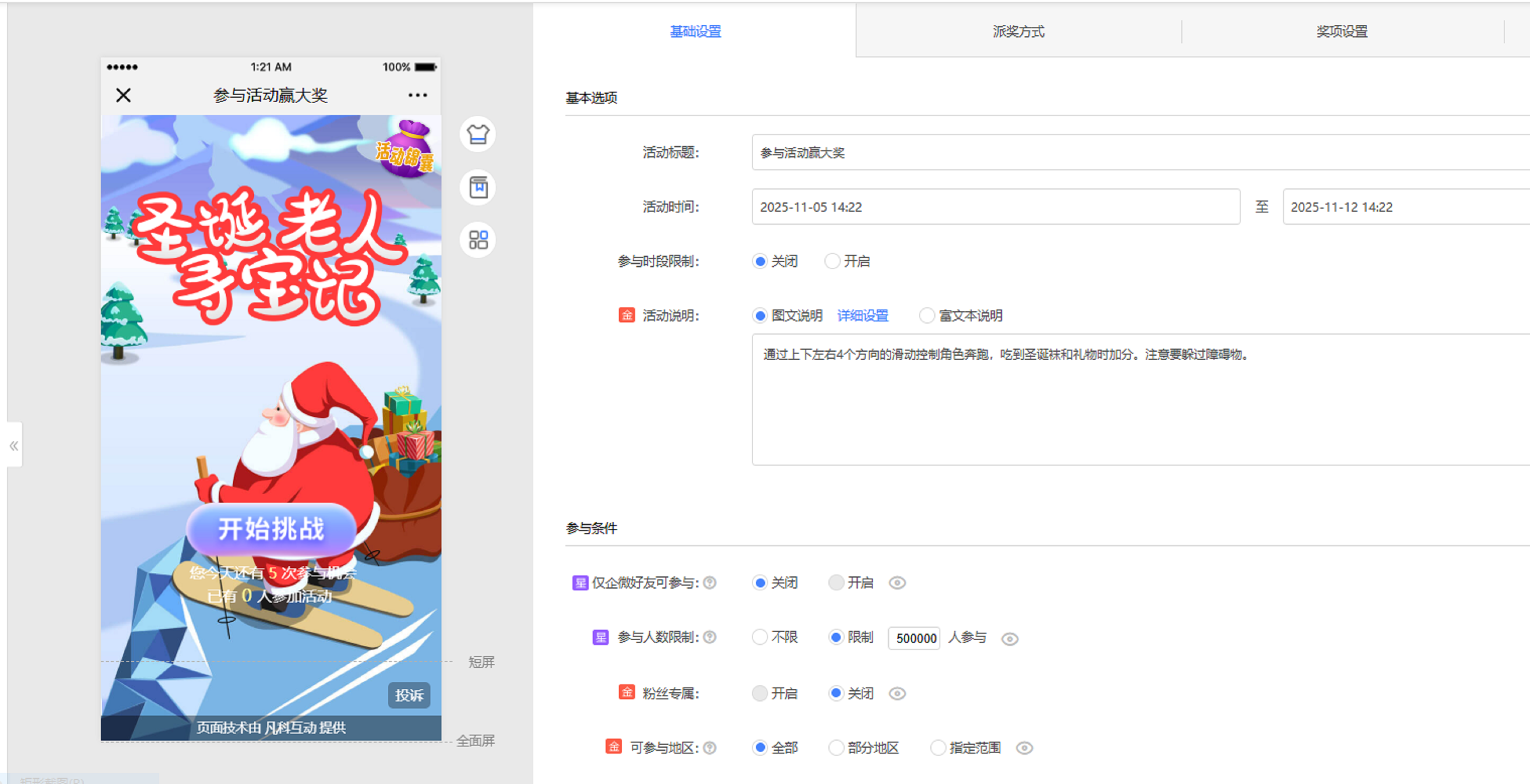 通过上述三个步骤,一个圣诞主题的营销活动便打造成功啦~平台内还有许多不同类型的活动可以选择。到时候,大家可以根据需求来选择开展哪类的互动活动欧!