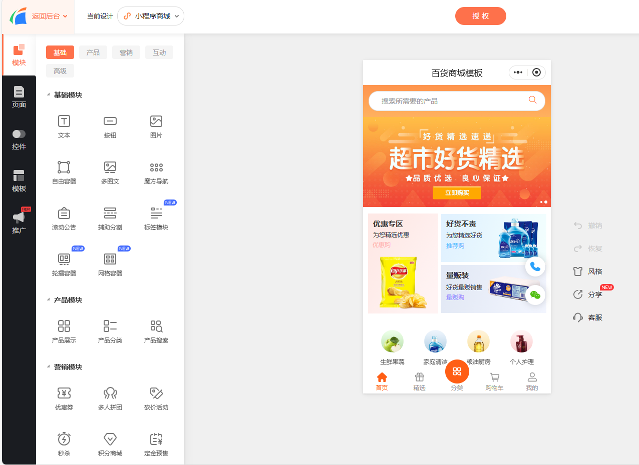 如果你也想搭建一款小程序卖货平台来卖货,却苦于没有技术而又预算有限,那相信这个在线商城搭建工具是你不错的选择。