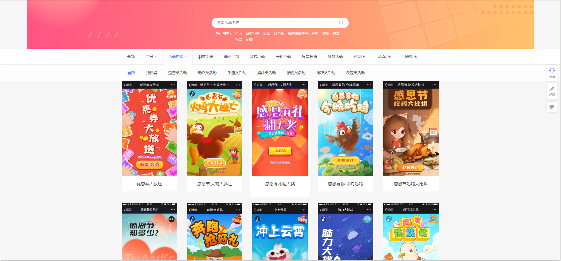 除此之外,还有一个很重要的功能板块就是活动设置,
