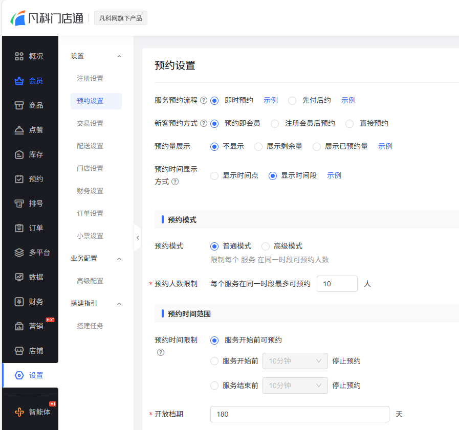 的管理后台,我们可以对预约功能进行设置。我们点击“
