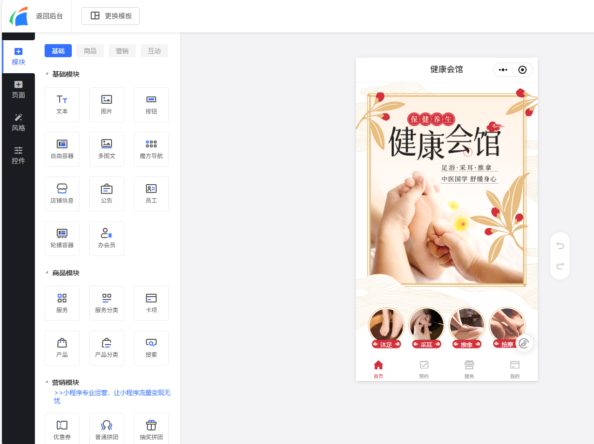 套用完模板之后,我们可以对模板进行个性化设计。尤其是小程序的