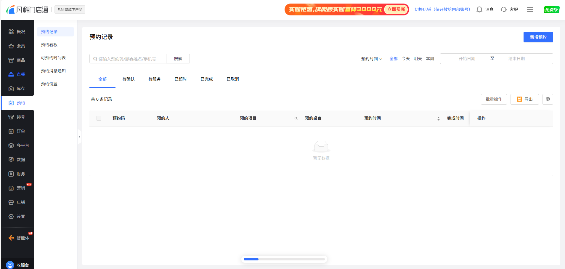 ”这个版块,还可以查看顾客们的预约记录,也可以自己手动新增预约,对预约进行筛选、导出哦!