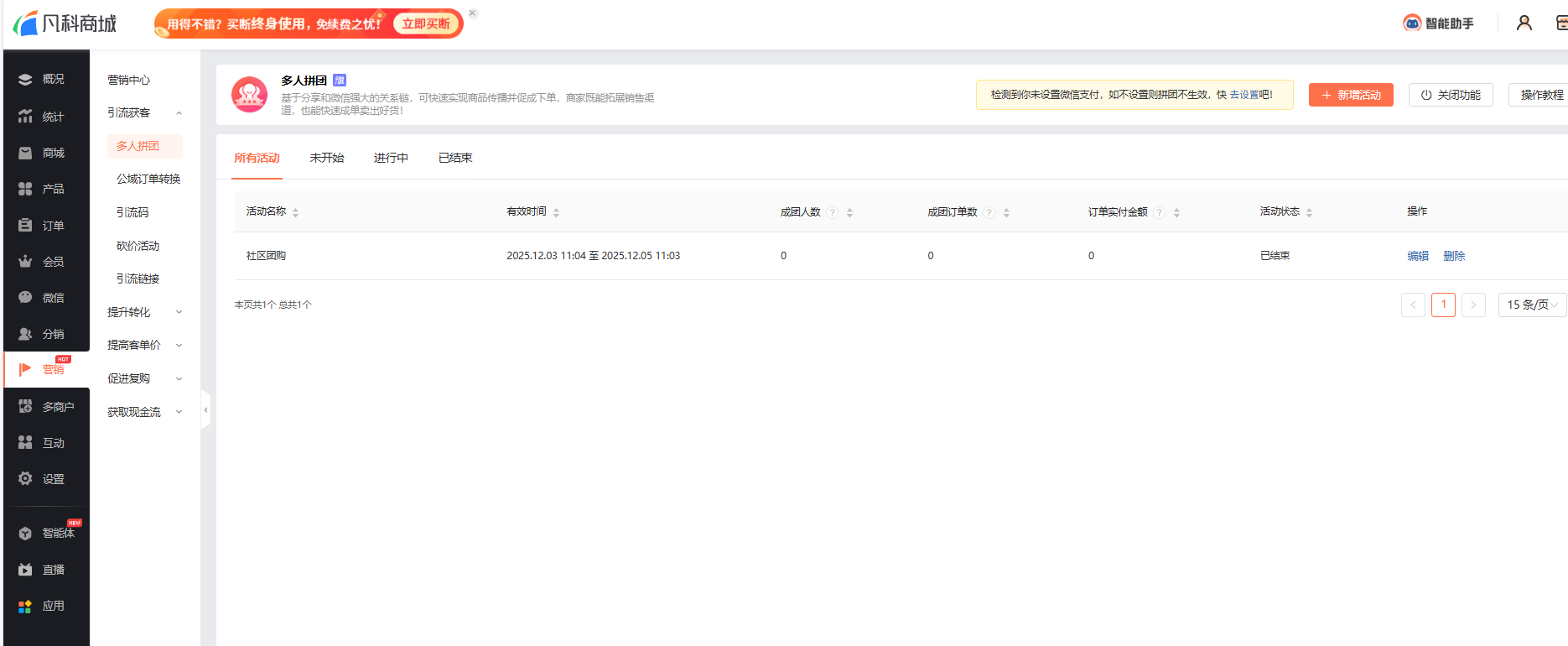 ,然后去配置一下微信支付,这样社区团购功能就成功开通啦!
