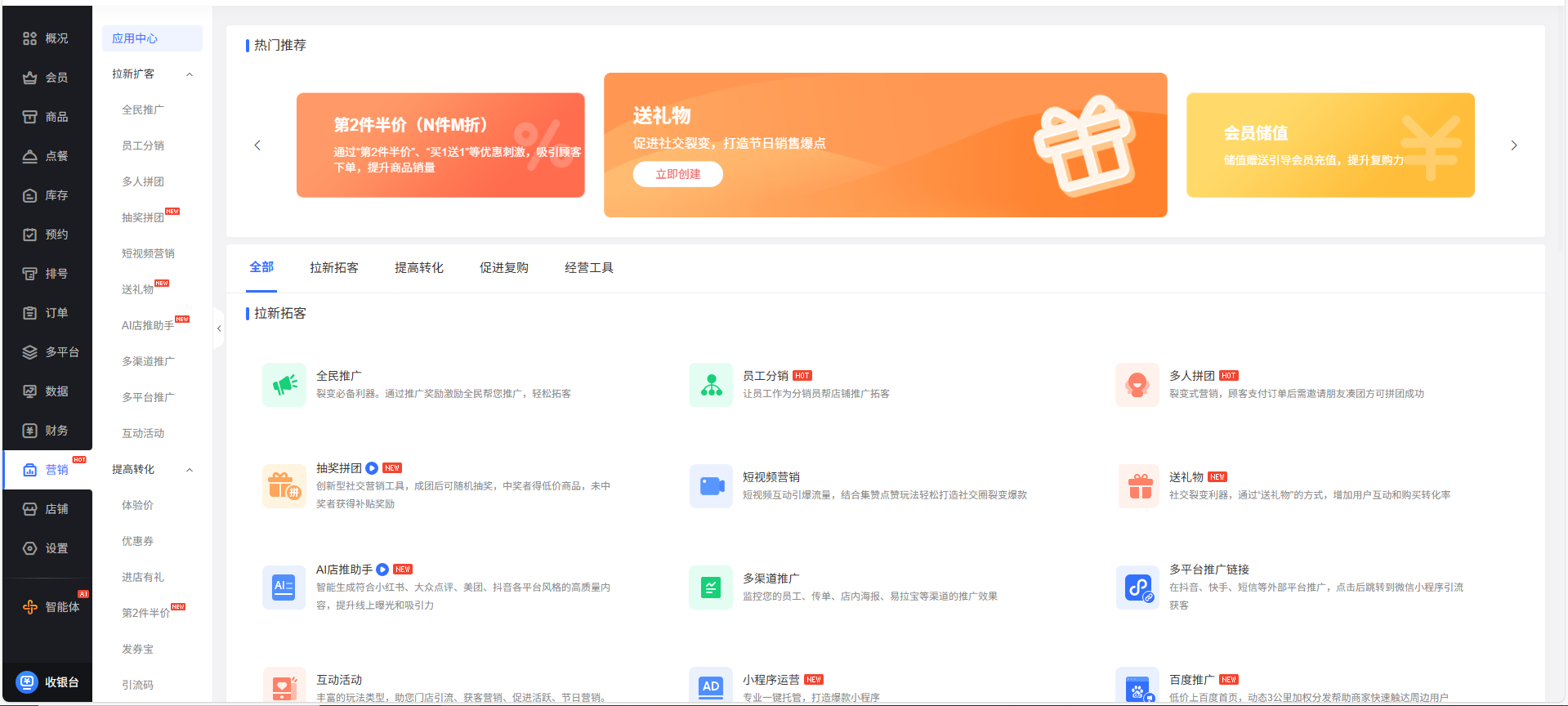如果我们想通过营销手段来给门店引流的话,这里也是可以操作的。在这里,我们可以点击“
