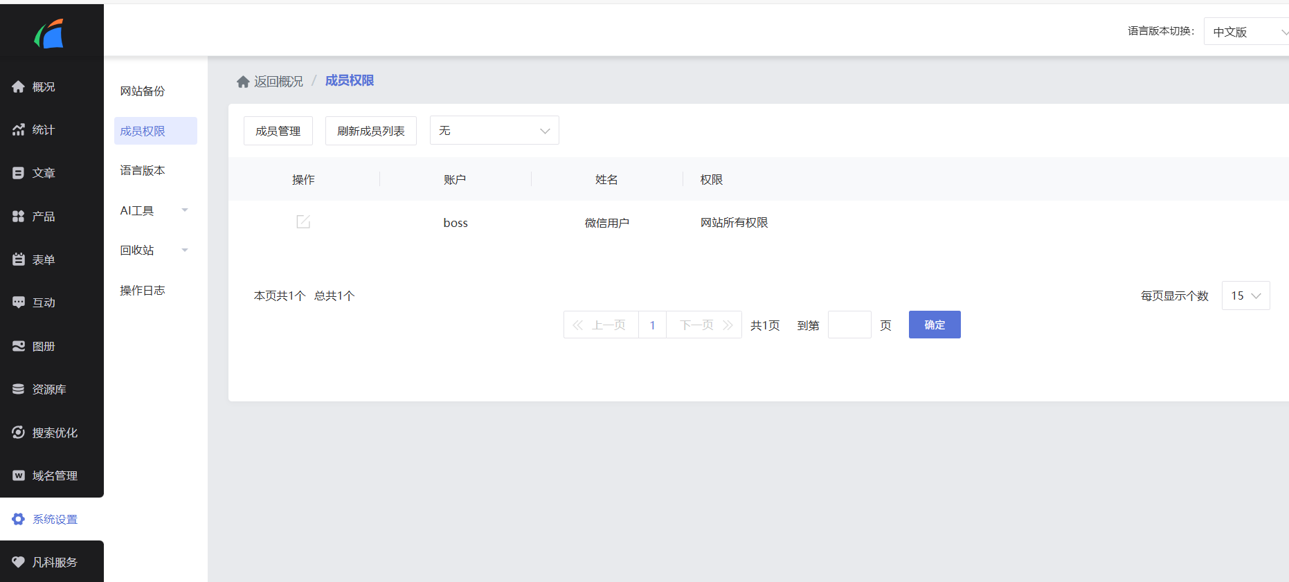 里的成员权限功能就考虑到了团队协作的需求,,解决了网站运营的痛点。