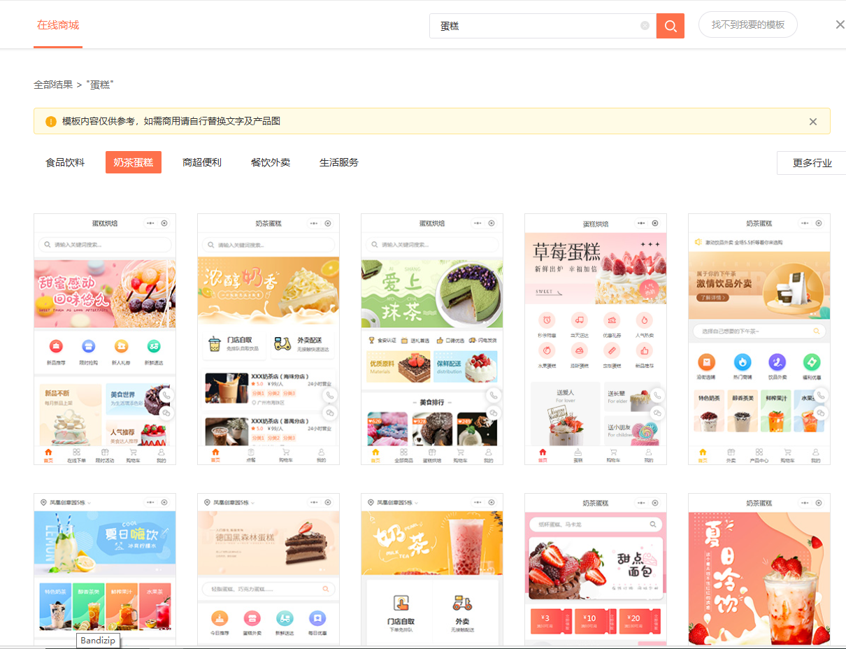 这个平台,注册账号,然后进入模板中心,在搜索框输入“蛋糕”,选一个心仪的模板然后套用就行了。