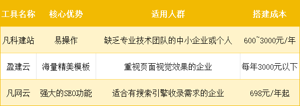 为了能让大家更直观地对比这三家企业网站搭建公司,小编给大家罗列了一个表格,大家可以参考一下: