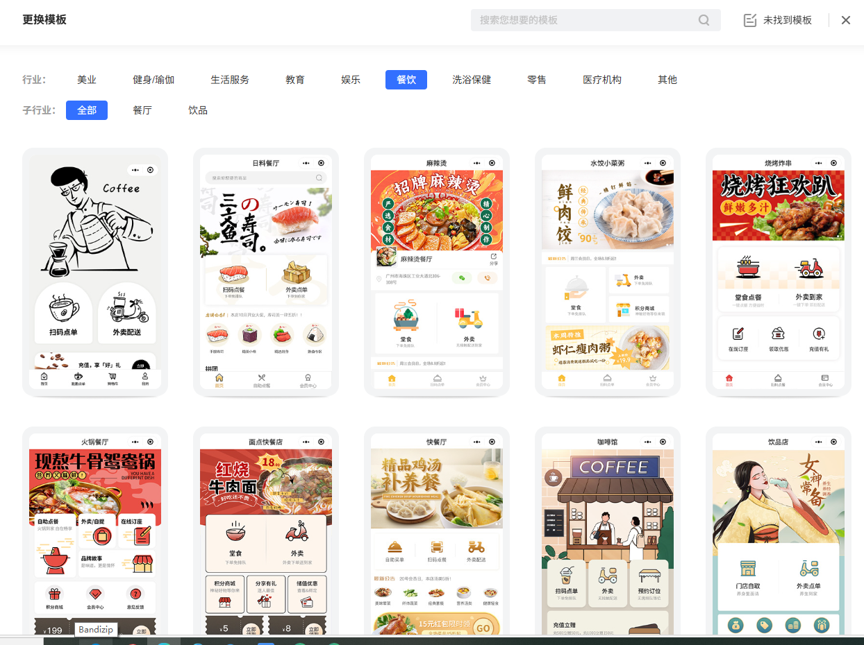 接下来,我们可以开始装修我们的店铺啦!进入模板库,我们可以直接套用对应的行业模板,然后在模板的基础上进行设计就可以啦~餐饮行业的模板还是很多滴,我们可以根据自己门店的特点选择匹配的模板哟~值得注意的是,我们可以通过在首页上传门店logo和菜品实图、门店营业执照,添加门店定位控件等方式进行信任背书,吸引顾客前来购买。