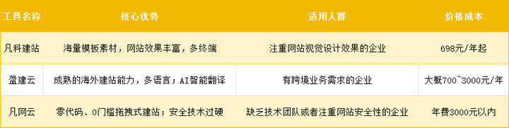为了能让大家更清晰、更直观地对比以上这三款网站开发工具,精准匹配适合你的那一款,小编给大家制作了一个表格,有需要的可以看看。