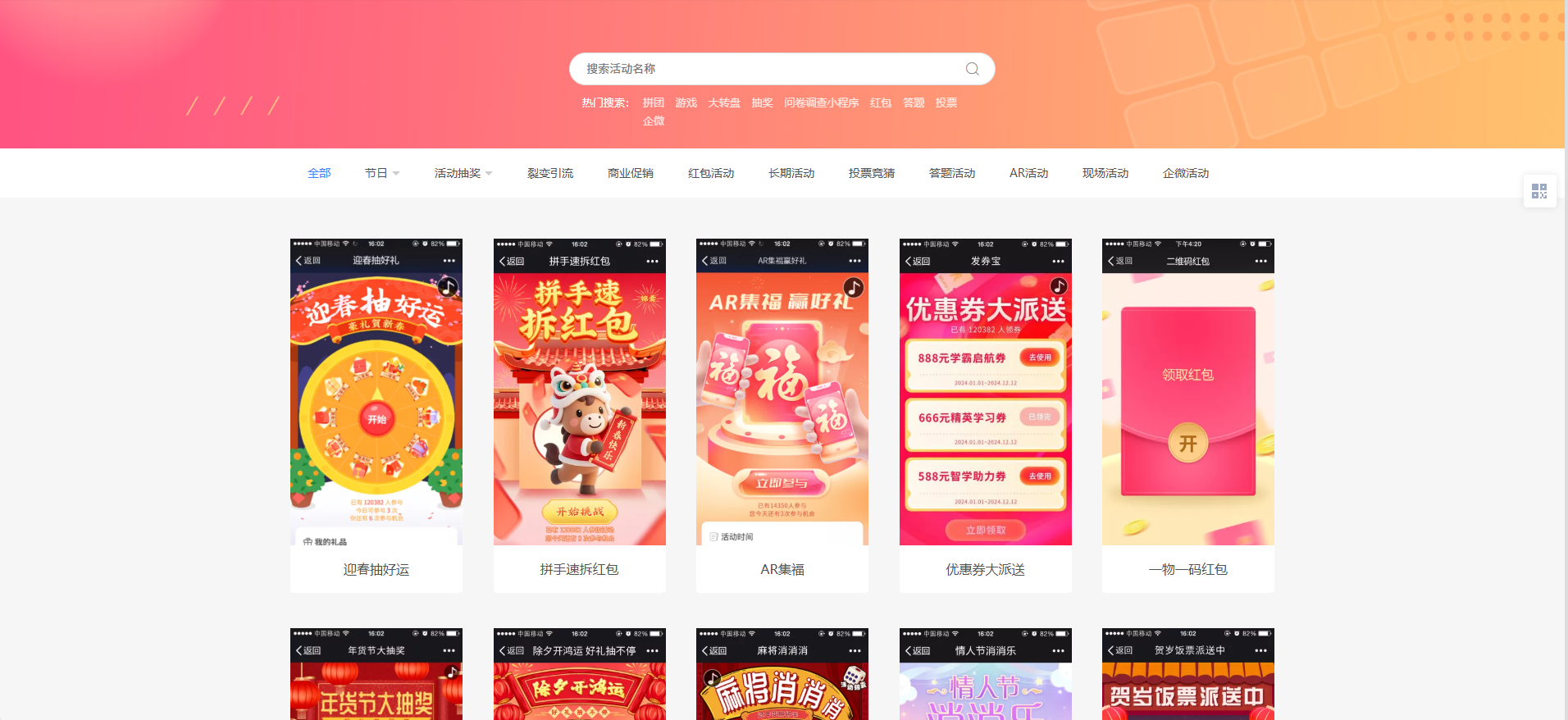 年会抽奖小游戏怎么做?操作指南来啦~准备过年啦,公司的年会也逐渐提上日常了,可能不少小伙伴在准备今年的年会,年会里少不了一些节目和互动活动,而抽奖环节常常能让现场热闹无比,那么一款有趣的年会抽奖小游戏应该怎么做呢?可能有小伙伴觉得要做年会抽奖小游戏免不了要碰代码,自己没有代码基础可怎么办?其实不用愁~今天小编就用【凡科互动用这里的现成模板做一个年会抽奖小游戏,快来看看这份操作指南吧~