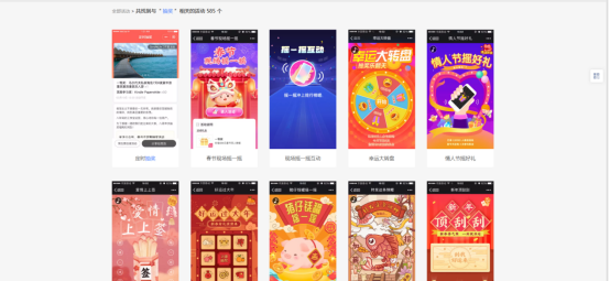 登录之后我们就可以选择模版了,这里有很多模板可以选择,根据需要选一个就可以开始装修啦。如果想快速定位自己需要的模版,只需要在搜索栏搜相关的关键词就可以啦,比如说今天要做抽奖,那么输入“抽奖”,就能快速定位到相关模版了。