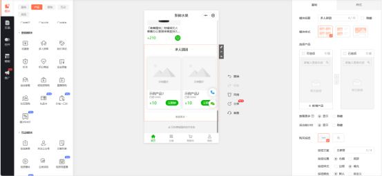 3、完善基础装修后,就来设置核心的团购功能,我们在【模块--产品--营销模块】中选择【多人拼团】,进入拼团设置页面。在这里可以新增团购产品,填写产品名称、规格、单价,还能上传高清实物图,让邻居们清晰了解产品情况。之后你还能设置成团人数、拼团有效期,方便你管理。