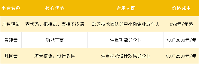 为了方便大家对比这三款小程序搭建平台,小编为大家罗列了一个表格,大家可以对比一下。