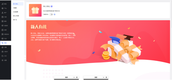 假如你不是很懂营销,或者想不到好点子,你可以选择左侧操作栏里的【营销】点开这里就有很多已经准备好了的营销活动啦,省心省力又高效。