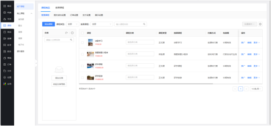 5、课程内容的添加可以来到后台进行增删,看到编辑页面左上角的【管理后台——课程】就能对课程内容进行管理,在这里你可以设置各类课程,上传高清图片,让学员更加直观的了解到课程内容。