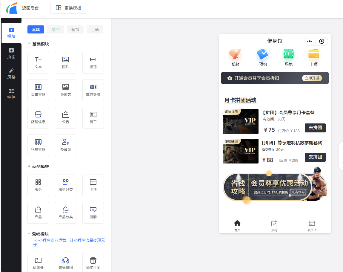 完成以上四步之后,我们的健身馆小程序就搭建完成啦!如果你也想搭建一个健身馆小程序,那就赶快试试吧!