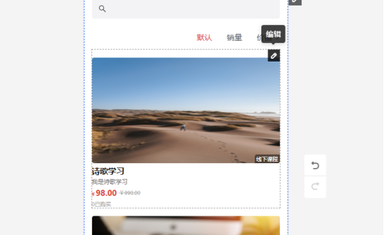 4、要做微信小程序教育平台那肯定要有课程啦,你可以选择下方的预约,进入课程列表中,在这里你可以修改课程的详细内容,将光标移动到课程处,出现小铅笔,然后点击一下,就可以进入课程的设置页面啦,在这里设置好课程名字、上课时间、收费方式等等,还能上传商品图,让学员更加直观地了解课程内容。