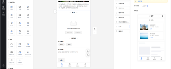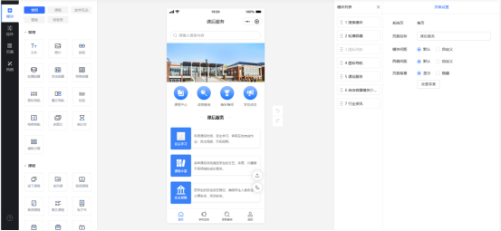 2、我们选择好模板后,就可以点击搭建,然后就能来到装修页面啦,装修这里的操作挺简单的,不用碰代码,动动鼠标、敲敲键盘就能用拖曳式操作来完成搭建啦。我们可以在这里修改一些基础内容,比如说小程序名称、整体颜色、模块设置等,还能修改模块的名称,让这个小程序更加符合你的需求。