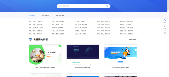 2、我们来到平台官网的首页,点击上方导航栏里的【网站模板】,我们不用从0开始搭建,这里是有很多现成的模板的,覆盖的行业也挺多的,所以大家可以按需选择相应的模板。如果想快速定位自己所在行业模板,可以点击标签导航栏或者是在搜索栏输入相关关键词,这要能快速框选相关模板。