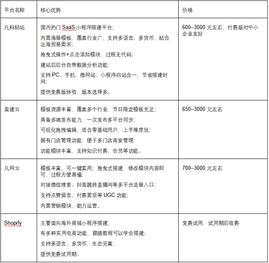 选择做小程序的网站,核心要看自己的生意规模、功能需求和技术基础,开发前可以先试用一下,亲身感受操作的流畅度和功能适配性,小编做了一张表,方便大家进行选择~祝大家都能选到适合自己生意的工具。