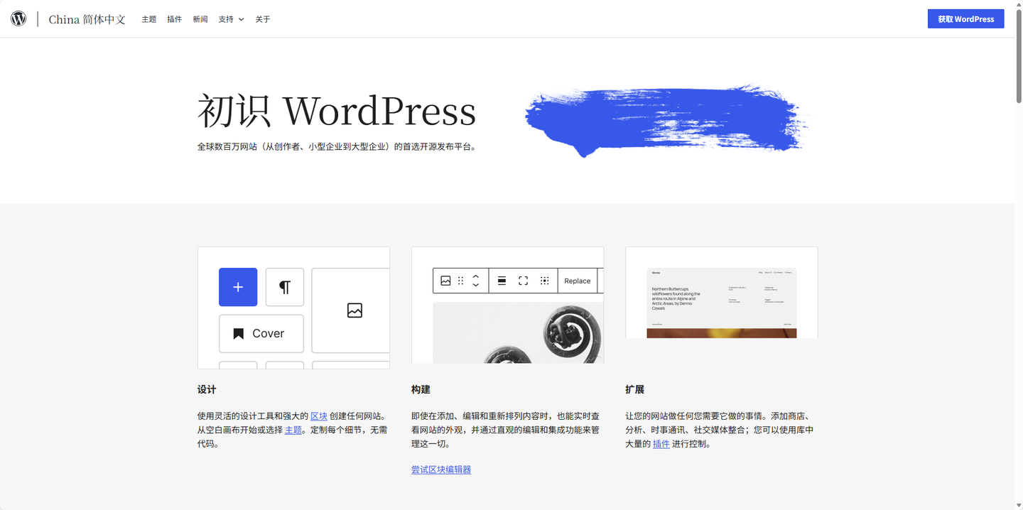平台内置文章、页面、媒体库等内容管理功能,非常适合构建内容型网站。