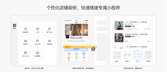 注册登录平台后,在页面上方输入理发或美容美发,就能看到很多精美的、现成的小程序模板,平台知道商家们的需求,这些模板本身就设计有预约、案例展示的模块,不用我们从零开始搭,选个你喜欢的,点击一键开始~