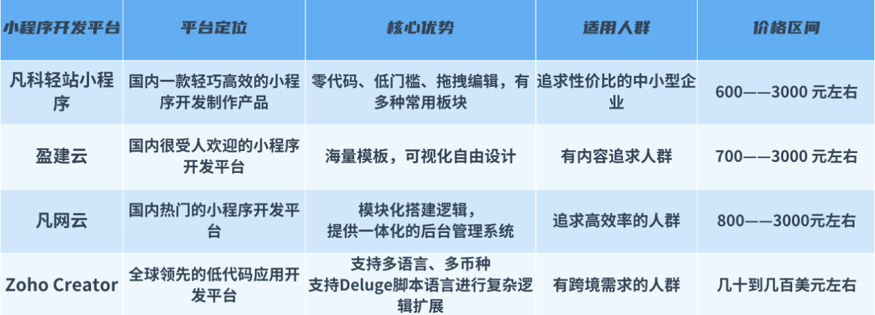 从上面的对比不难看出,国产小程序开发平台在性价比方面具有明显优势。